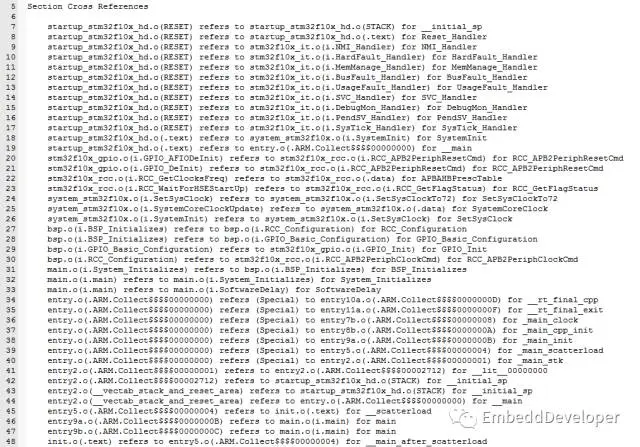 Section Cross References:模块、段(入口)交叉引用,指的是各个源文件生成的模块、段(定义的入口)之间相互引用的关系。