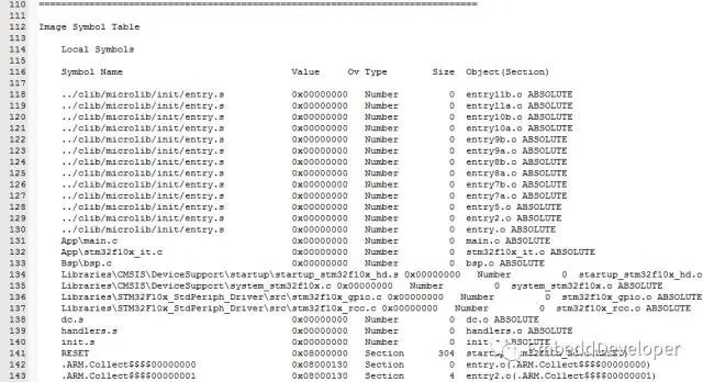 符号类型大概有几种:Number、Section、Thumb Code、Data等;