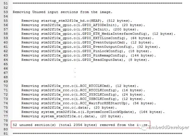 52 unused section(s) (total 2356 bytes) removed from the image.