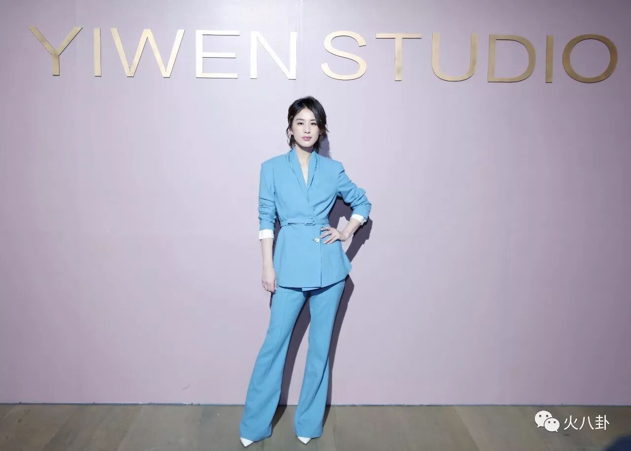 10月28日,黄圣依身着天蓝色西装帅气亮相北京央美术馆,助阵中国本土设计师品牌YIWEN STUDIO的2018春夏时装发布会。