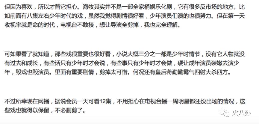 不过必须要说,慢不代表烂。一部优秀电视剧,剧情应该张弛有度,而不是像玛丽苏偶像剧。发展神速的剧情,一见面就相爱,过两集就分手,这种设定完全是在藐视观众智商啊!