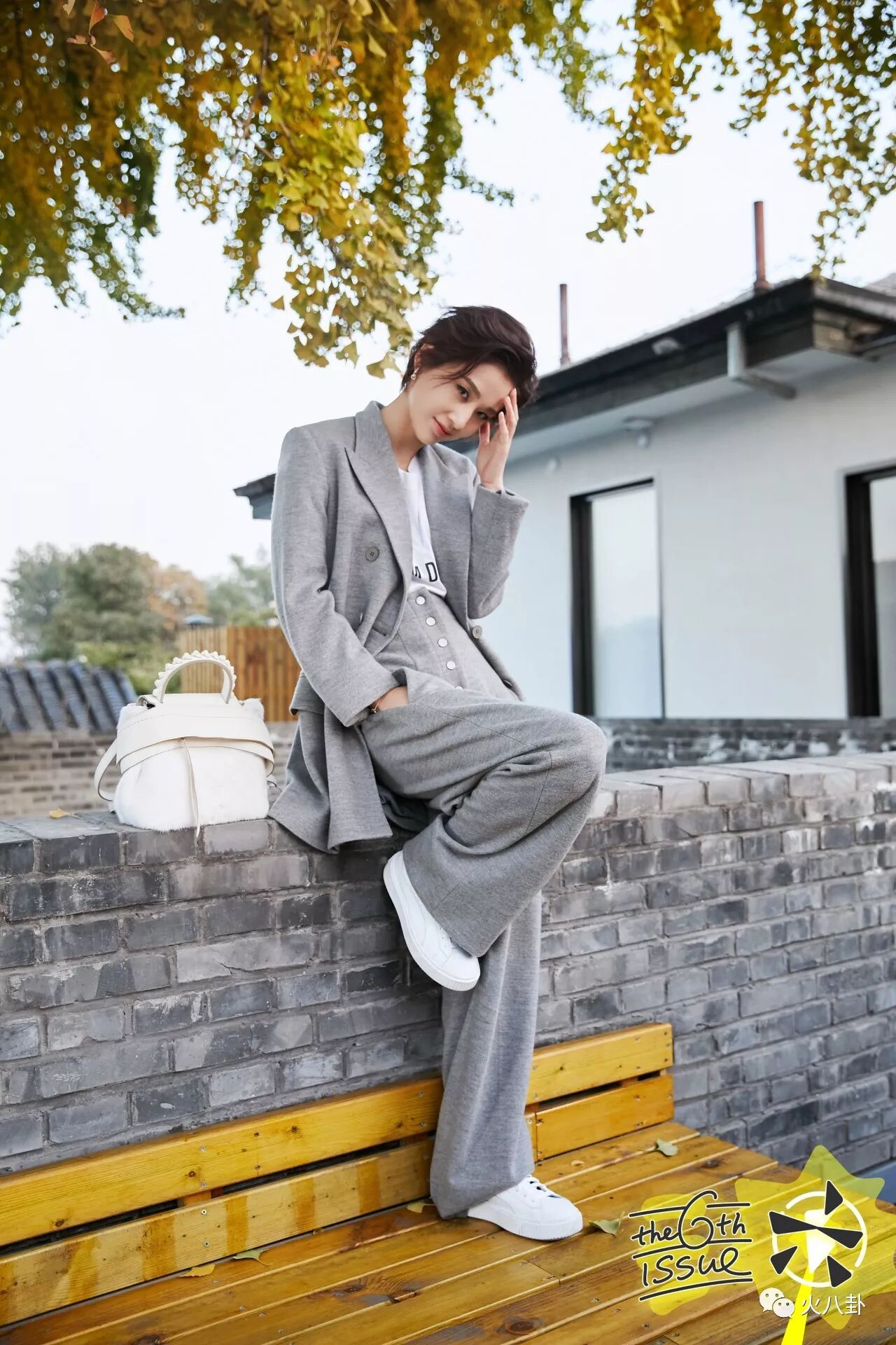 第三组LOOK用灰色加白色的组合,给人一种高级感。黄圣依以灰色的西装套装搭配白T、小白鞋,散发出随性慵懒的迷人气质,为大家演绎什么叫“舒服着时髦”!