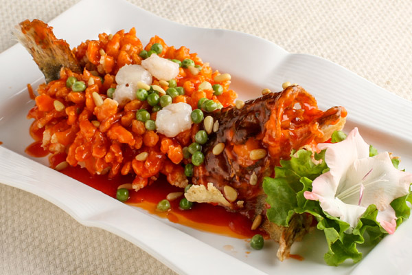 松子鱼整鱼上桌,卖相艳丽,鲜香扑鼻,酸甜适口,酥脆滑腻,寓意有头有尾,圆满幸福。