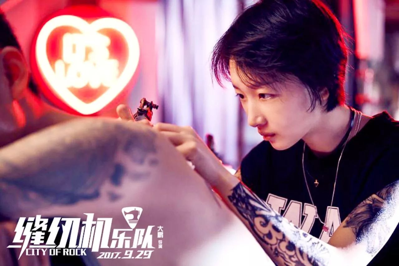 如果用颜色形容,《爱乐之城》里的梦想是淡紫色的,浪漫又心痛;《欢乐好声音》是鹅绒红的,坚韧而励志;《闪光少女》是浅粉色的,清新且纯粹;《穆赫兰道》是藏蓝色的,抑郁并颤栗。于9月29日开画的《缝纫机乐队》是“金光闪闪”的,是跟大金链子大金表非常匹配的金光与闪烁。