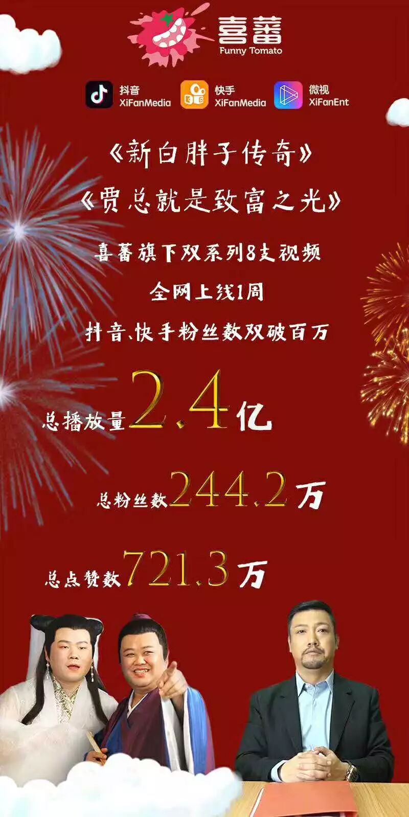 作为影视制作团队在短视频领域的初次“试水”,《新白胖子传奇》《贾总就是致富之光》口碑都很不错。用专业器材拍摄、用专业人员打磨内容,与平台内其他内容形成差异化,或许正是“喜蕃”作品在众多短视频内容中脱颖而出的原因。