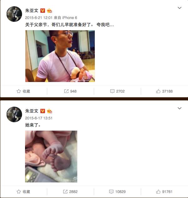 2015年,朱亚文有了小情人,女儿出生,更为他的生活添加了无尽的色彩,从此变成了女儿的脑残粉。