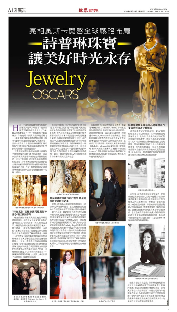 “时光印记”、“时光旅程”等明星系列亮相第89届奥斯卡颁奖典礼,受到凤凰资讯、环球网时尚频道、米娜时尚、世界日报等国内外主流媒体对事件的持续关注与报道。