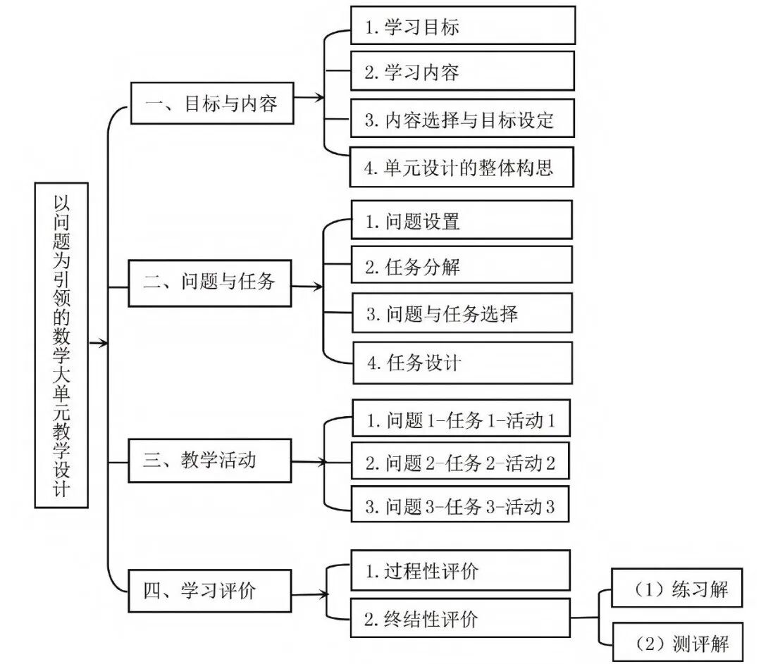 整体设计是指在系统分析的基础上,以知识内在本质为标准组建教学单元,进行单元整体规划,确定单元主题、明确单元目标、设计单元大问题、细化单元小问题、设置任务解决问题、设置活动思考问题,设置总结问题。学生在完整的问题解决过程中,感悟数学知识的价值与力量,有利于学生数学核心素养的养成。