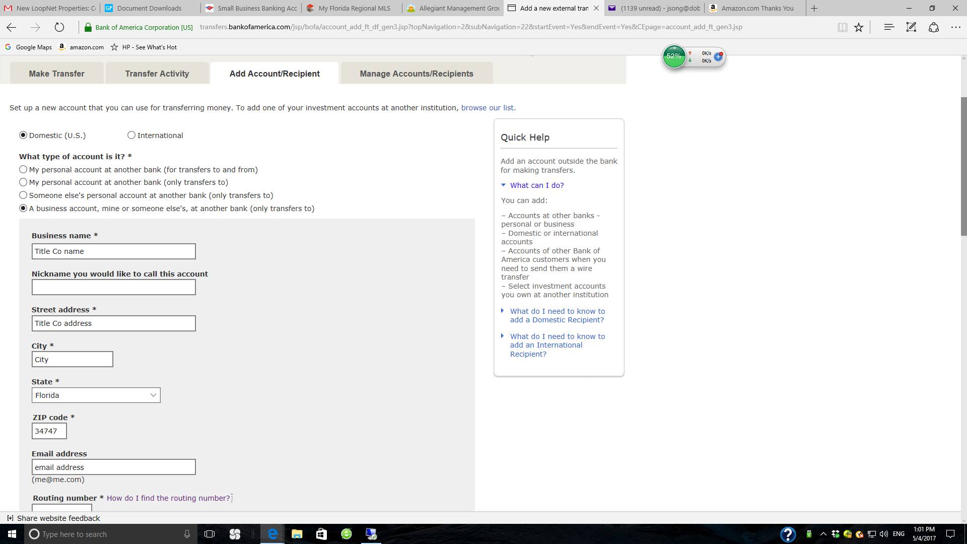 点击 ADD ACCOUNT RECEIPIENT,添加一个新的收款人信息