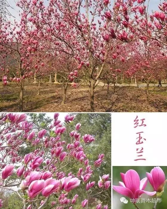 红玉兰是木兰科新品种研究所选育的新品种,每年春夏秋三次开花。我国盛夏少花,木本花木更少,此品种很好地满足了这段时间的需要。红运玉兰可在庭园孤植,也可群栽,现已趋向行道树的应用。红玉兰栽培要点为喜光、喜肥、喜水,怕积水烂根。南方低洼地种植时应抬高位置,北方pH值在7.5-8.3的碱性地,每年可用3‰的硫酸亚铁溶液中和3-4次。由于木兰科植物新根为肉质根,伤口愈合较慢,移栽后需精心管理。