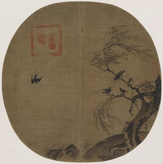 南宋 佚名《杨柳乳雀图》 台北故宫博物院藏