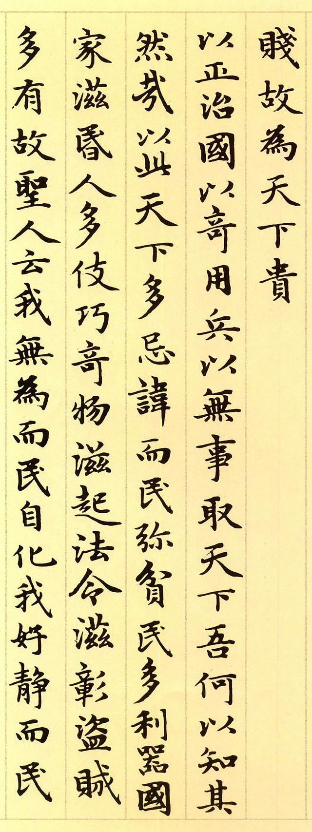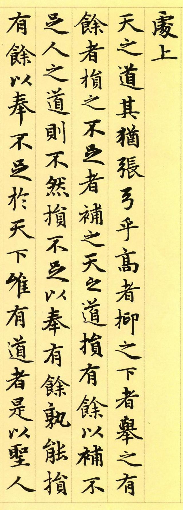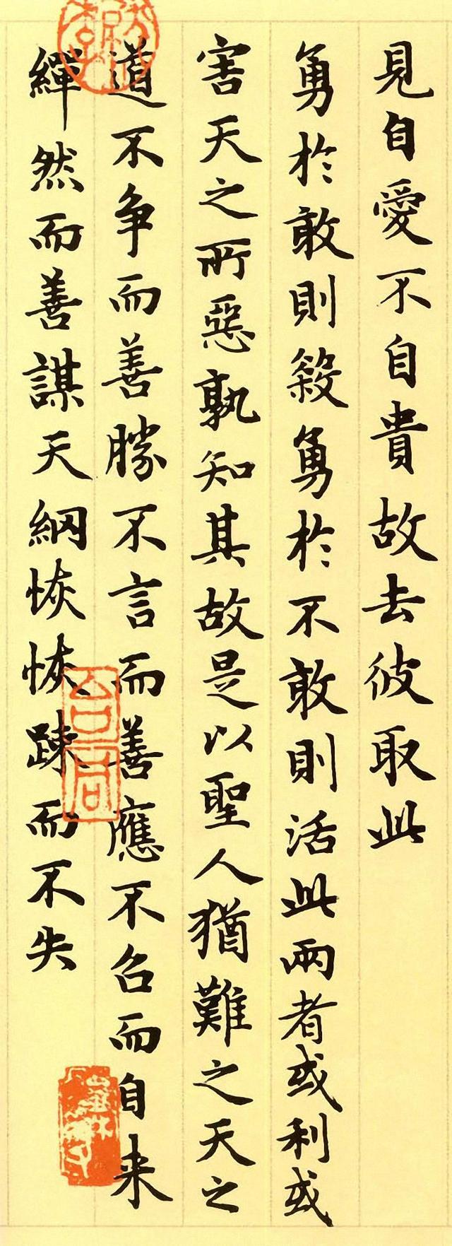 《道德经》是他的小楷代表作之一,书于延祐三年(公元1316年),时年六十三岁,字体工整秀丽,笔法稳健,独具风格。卷首有明姚绶行书“松雪书道德经”六字,前隔水绫上有近人张爰二题。曾经为明项元汴、项笃寿收藏。