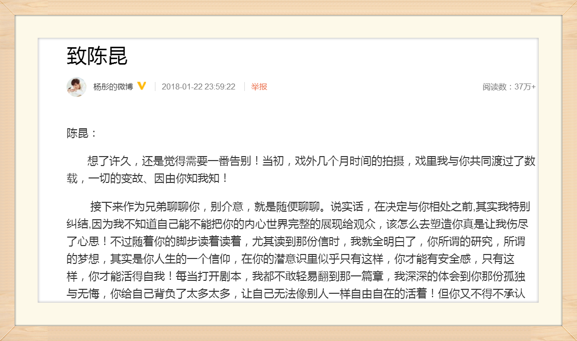 剧中陈昆的扮演者杨彤,写了一封给陈昆的信,让我们从另一个角度看陈昆。
