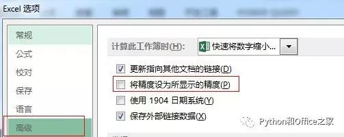 注意事项:第一种方法得出来的实际数据是包含好多位小数的数字,如果要保留两位小数,请先设置保留两位数字,然后使用第二种方法的2.3处理或者设置excel选项,勾选“将精度设为所显示的精度”,如下图所示: