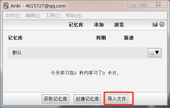 在anki主界面选择导入。