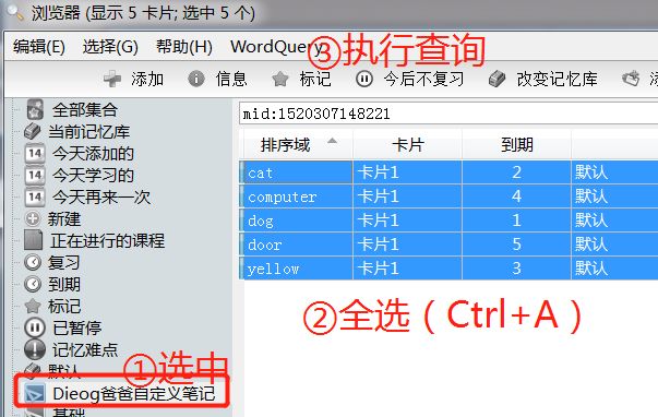 导入成功之后,在浏览库界面,全部选中本次添加的词卡之后,选中“WordQuery”工具栏,点击执行“Query Selected ”,等待插件在后台连接百词斩。