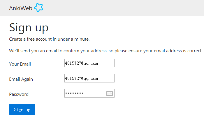 登陆Anki官网(https://ankiweb.net),用任意可接收确认信的邮箱地址注册。