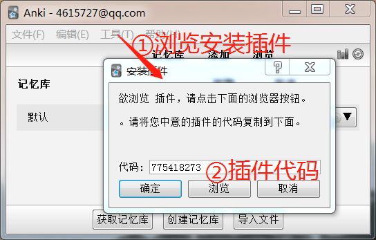 或点击“浏览”按钮,会打开anki网站的插件列表,找到WordQuery插件,拷贝其插件代码,粘贴至上述界面代码框中,点击“确定”按钮。