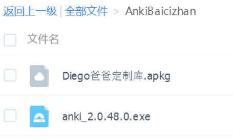 如果国外下载较慢,可以到Diego爸爸分享的(Anki+百词斩终极背单词)网盘下载,里面有Anki 2.0.48(注意版本,新版本可能和插件不兼容),以及为了方便家长朋友们使用提供的一个定制记忆库(内含笔记类型模板)。