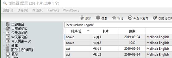 Tips:关注词卡列表上部的文本框,当前显示为“deck:默认”,可以直接输入“added:1”,过滤当天输入的词卡,added:7,会过滤出7天之内添加的词卡。