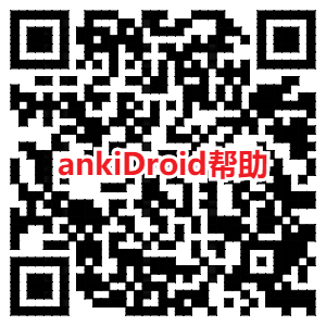 A10:ankiDroid(android版)有中文帮助,苹果版好像没找到,电脑用户可以用浏览器访问:https://docs.ankidroid.org/manual-zh-CN.html,或手机用户直接识别下列二维码查看帮助文件。