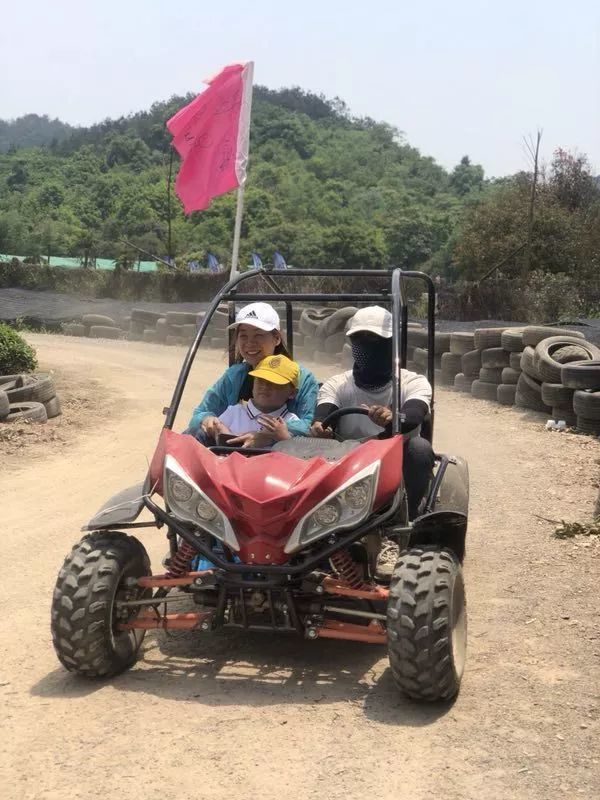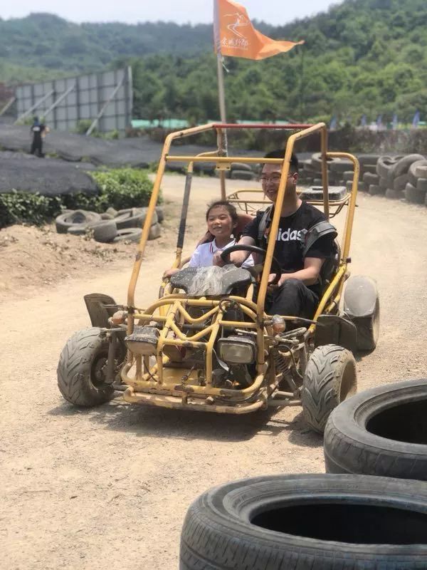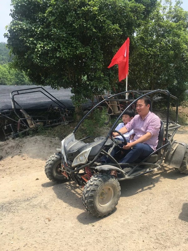 茶园卡丁车来喽,飞驰的卡丁车在茶园里穿行,虽然扬起一阵阵灰尘,但丝毫没有消减小朋友们的兴致。“冲啊!”,“加油!”,你追我赶,热闹非凡!