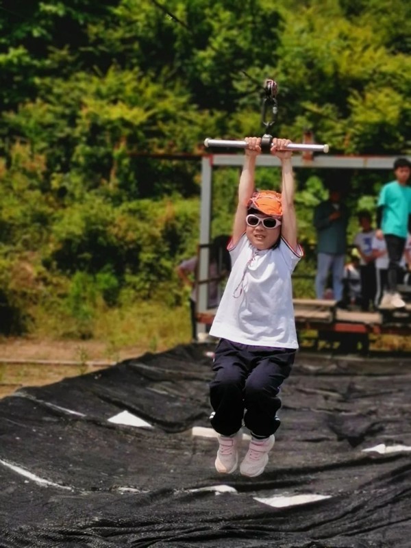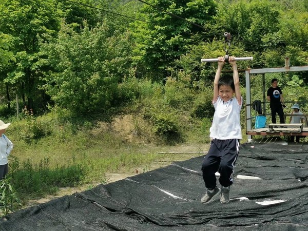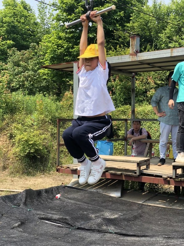 溜索和滑草是考验胆量的活动。小朋友们互相鼓励,互相加油,都顺利通过了挑战。瞧,小朋友们是多么勇敢,多么快乐!