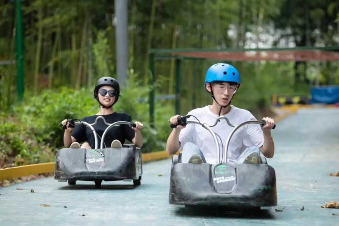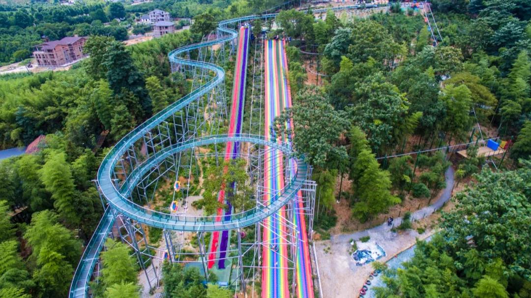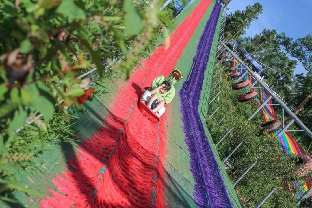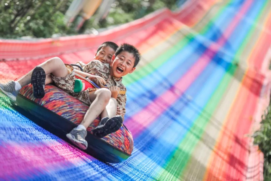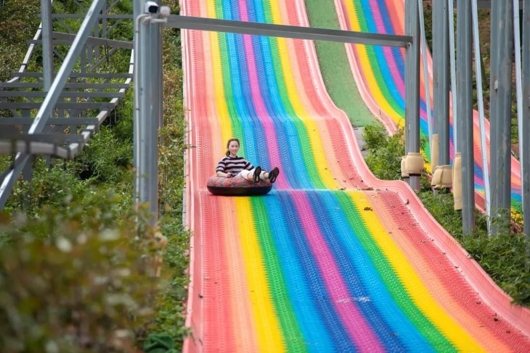 依托自然山势坡度修建二百多米的高山七彩滑道,是四季项目的最佳选择,给您不一样的新鲜体验。从长长的滑道飞驰而下,在一片尖叫声中体验极速坠落的刺激,仿佛整个身体从彩虹间穿过。