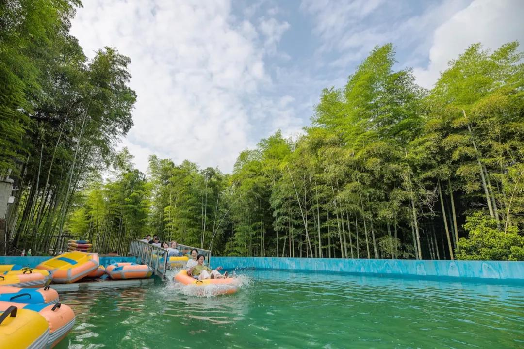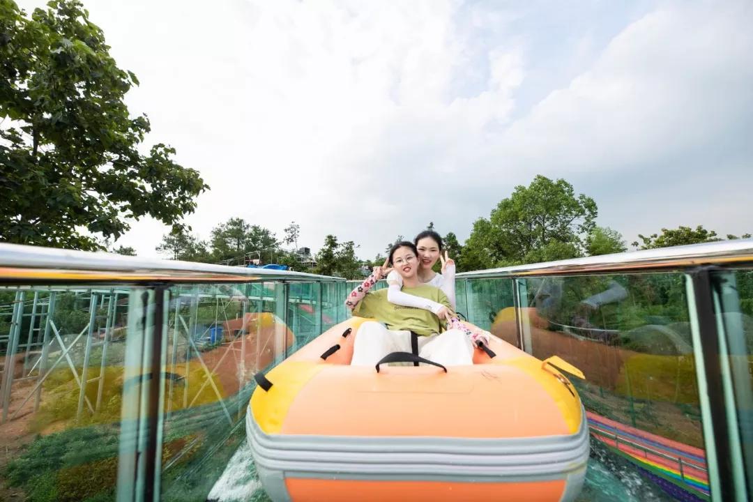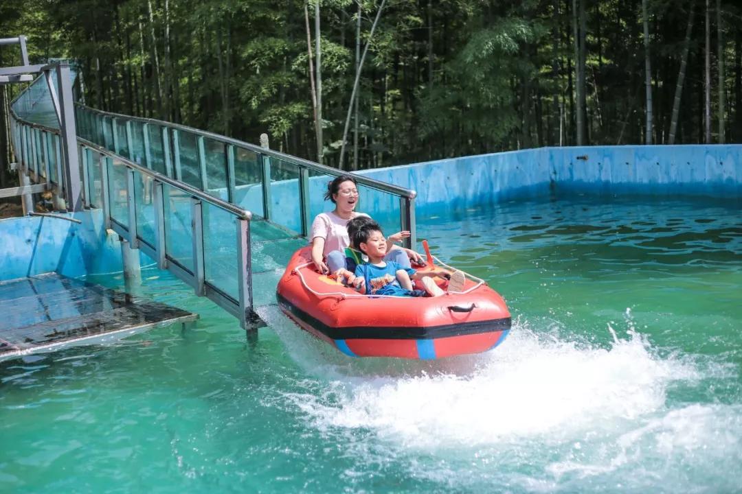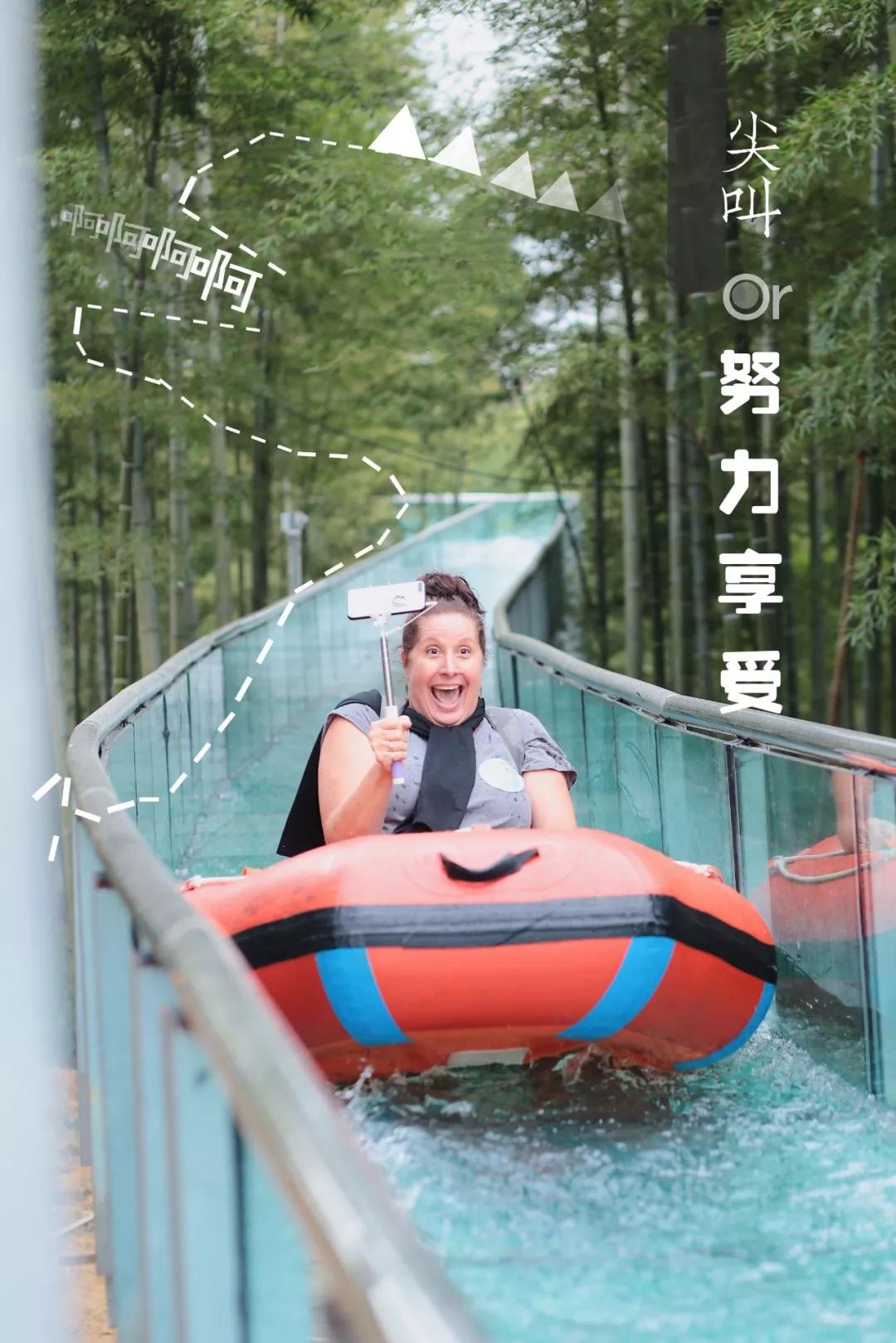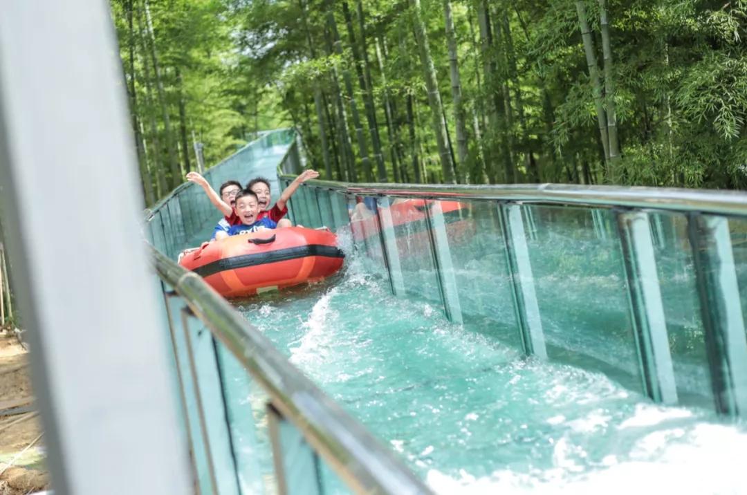 玻璃滑道全程置身于山林与田野间,犹如置身于天然氧吧之内,一边漂流,一边还可以欣赏平时看不到的美景,在惊艳刺激的同时,又多了一份新奇~~(漂流不湿身,漂流用水源自莫干山,终点的漏水设计,使水流和船体自然分离,漂流不湿身,四季都可以玩,不用刻意准备换的衣服,想玩就玩。)