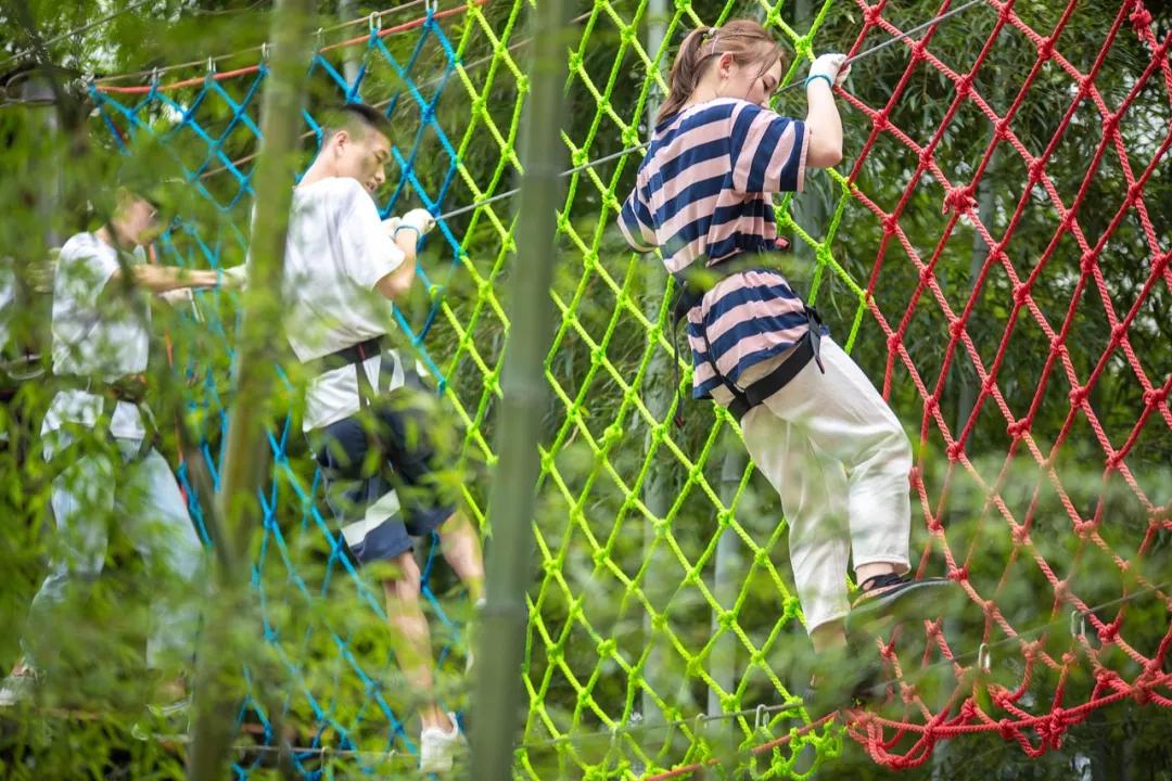 通过在林间设置难易不同的关卡,进行树木间的闯关探险。让你体验高空坠落与攀爬的快感,感受林间探险的刺激。