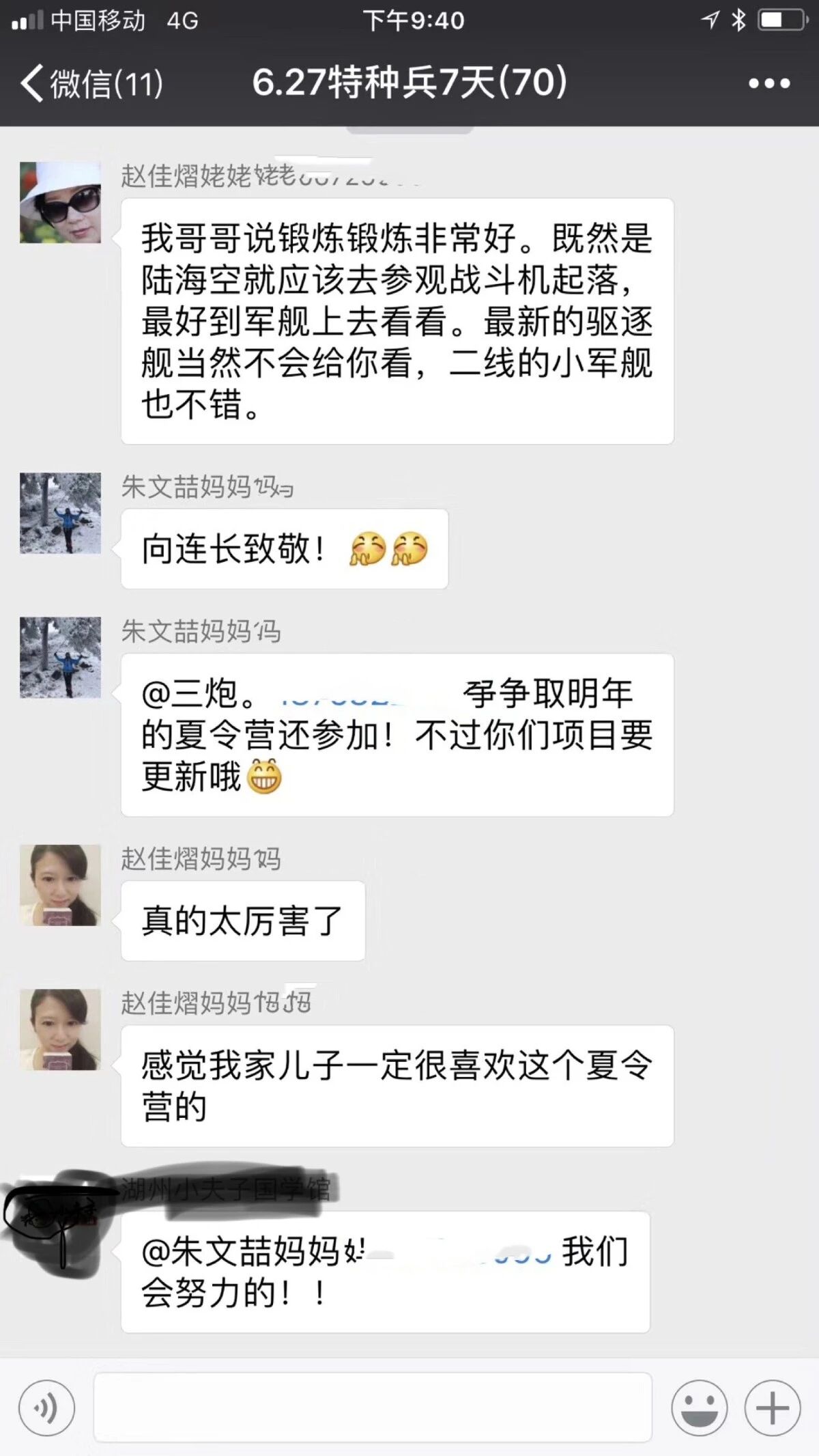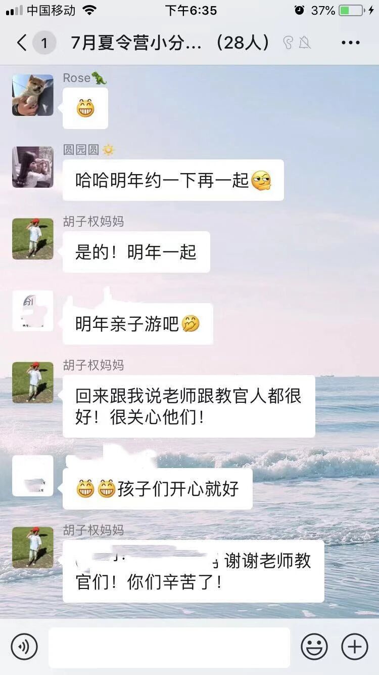 4、关于想家的孩子:根据我们的经验,基本都为第一天晚上快到睡觉的时候,开始想妈妈,然后第二天基本没事了。但是这个时候,往往也是家长最想知道孩子想不想妈妈的时候,所以建议那些第一次出门的,而你又特别想孩子的,打电话时间安排在中午,晚上不打。或者可以通过教练了解孩子的信息,通过打教练的手机给孩子接听。这样容易帮助孩子渡过想家期。