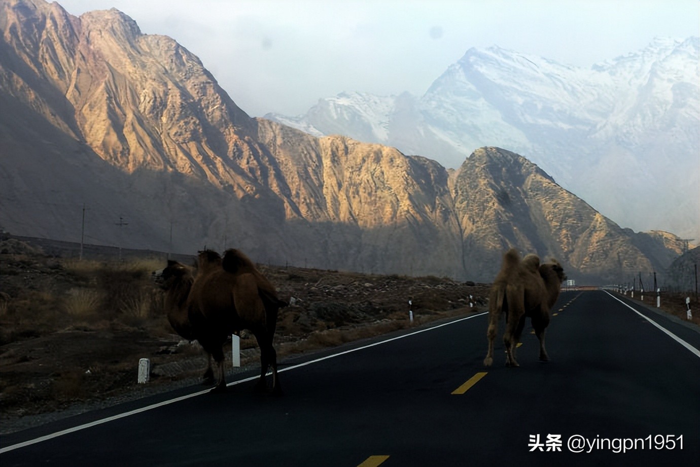 骆驼在公路上肆意行走,对我们游客来说倒成了一道独特的风景线。