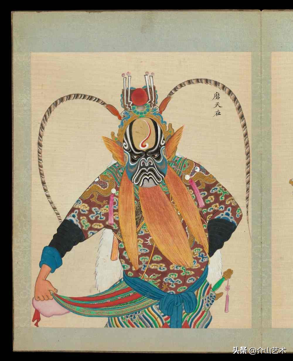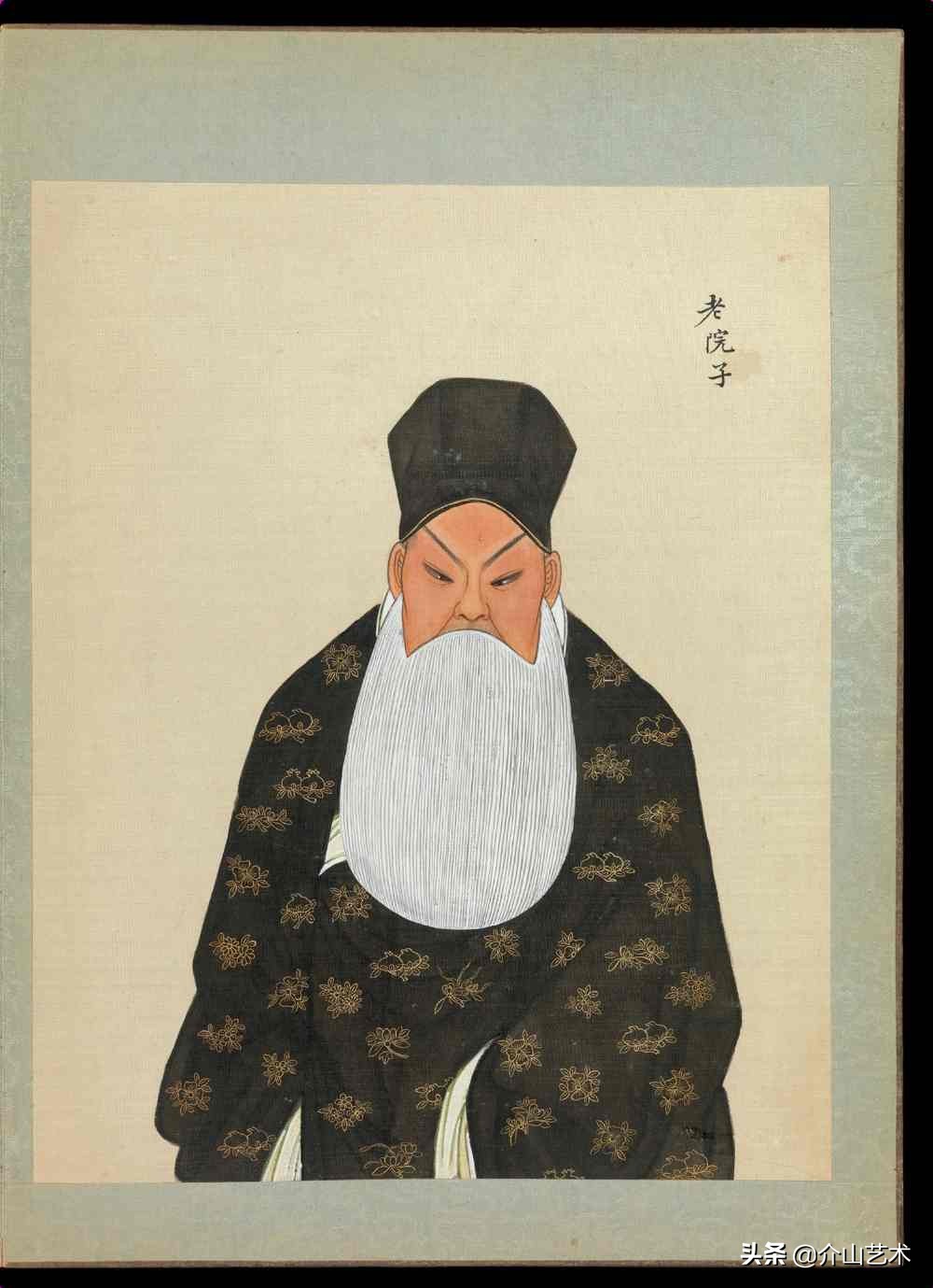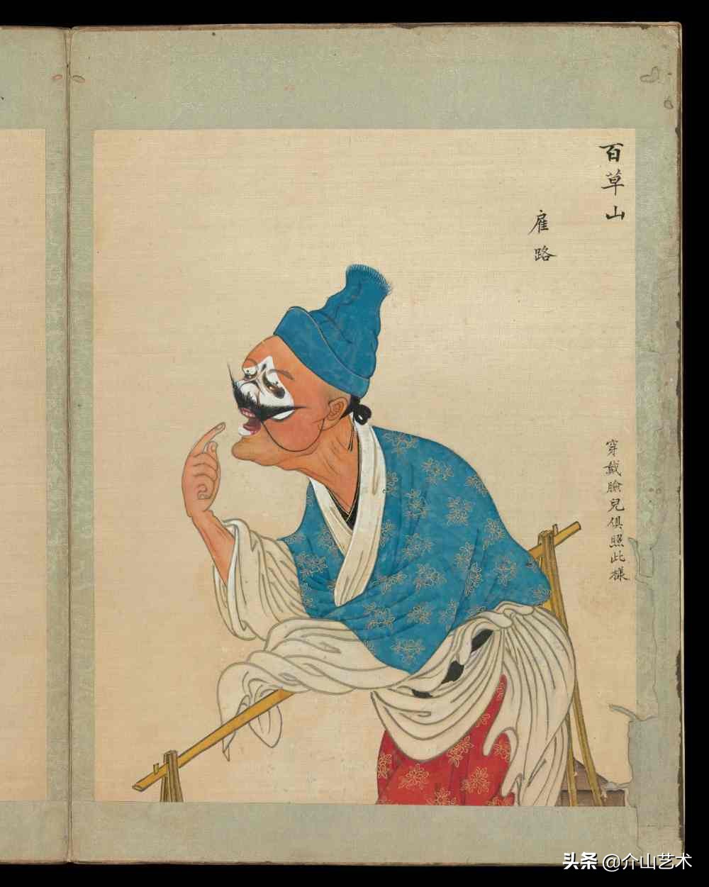 下面这组100位京剧人物造像,体现了清代不同京剧人物,不同脸谱与穿着,绘画细致生动,颜色、衣着纹路都凸显出人物的特征及性格,以工笔传统的手法绘制,这是一本珍贵的绘本,给后人研究京剧历史发展提供了宝贵的研究史料。