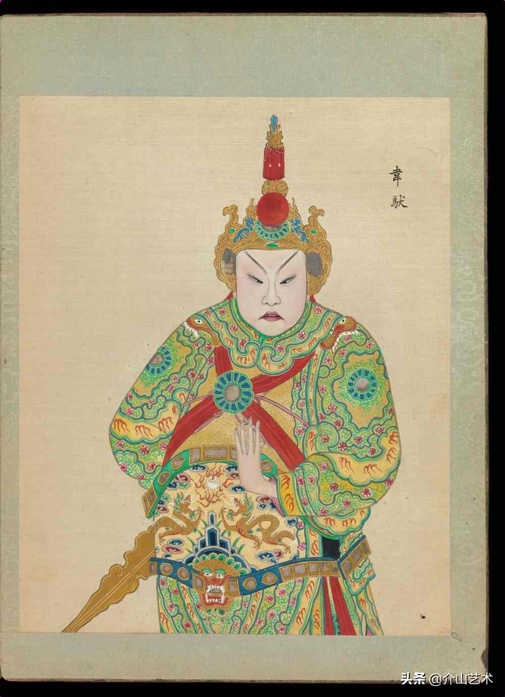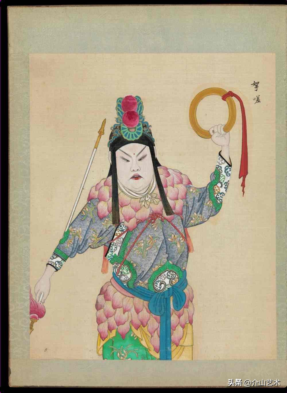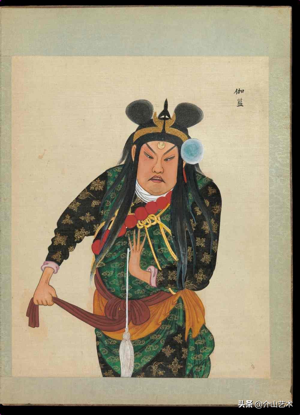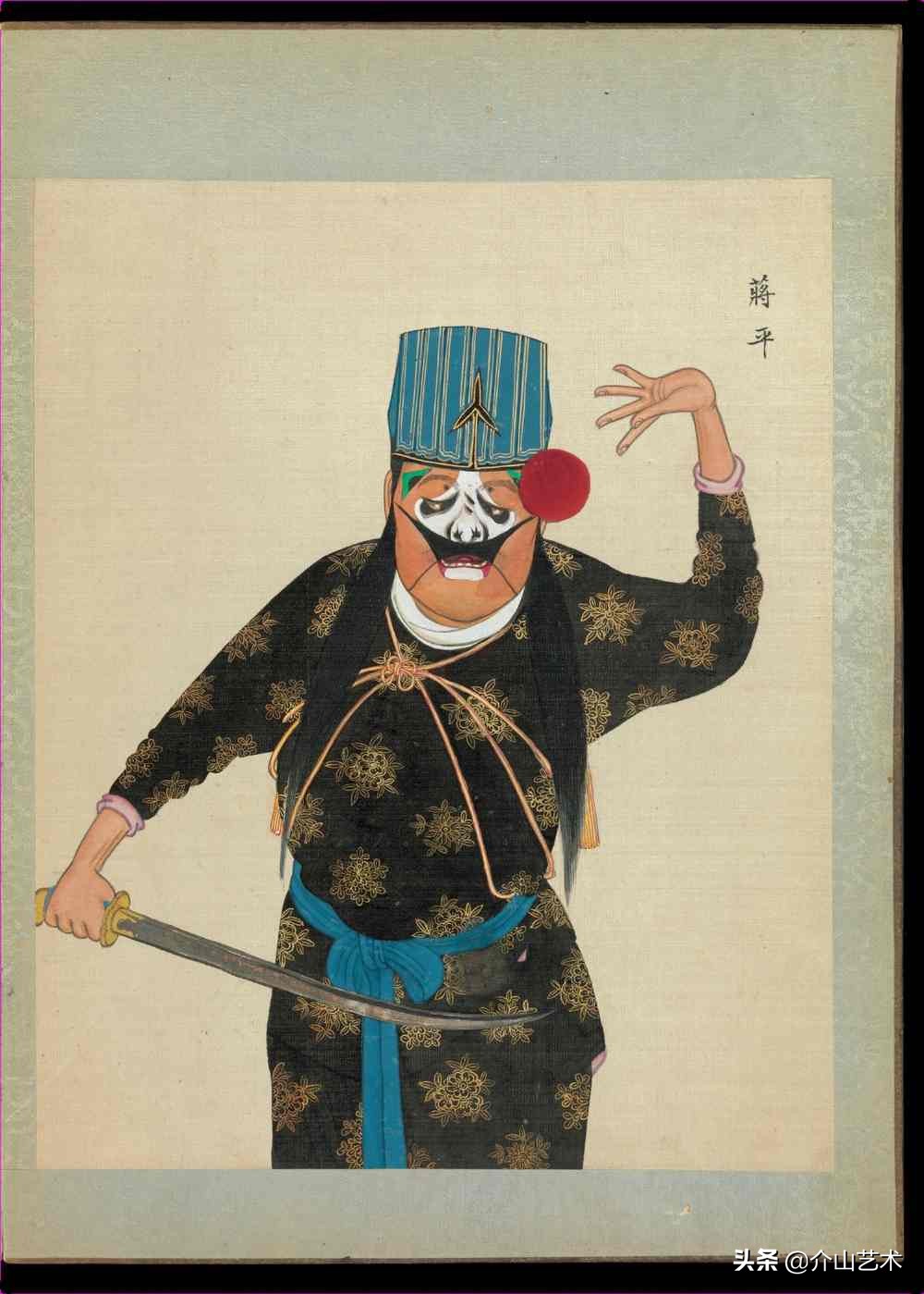 下面这组100位京剧人物造像,体现了清代不同京剧人物,不同脸谱与穿着,绘画细致生动,颜色、衣着纹路都凸显出人物的特征及性格,以工笔传统的手法绘制,这是一本珍贵的绘本,给后人研究京剧历史发展提供了宝贵的研究史料。