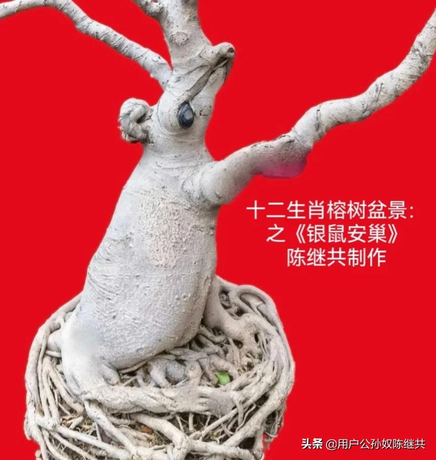人生世间,总有个人喜好与爱玩之物!玩出不出名堂权当自娱自乐,玩出点花样,算是社会承认。反正都是快乐,与名利无关。陈继共先生从小喜欢榕树,当学生期间,就喜欢自盖金鱼池并种小树榕遮荫。几十年来,培养了一套象形榕树盆景,十二生肖样样齐全。结果,二十几年前就在海峡两岸花博会屡得金奖。联合国南南组织的盆景专家组团上门参观,评价说此为天下奇榕,以实木主体十二生肖盆景,单盆各地亦有,但成龙配套十二盆,绝无仅有。这是业余家养榕树,绿化家园的典型。