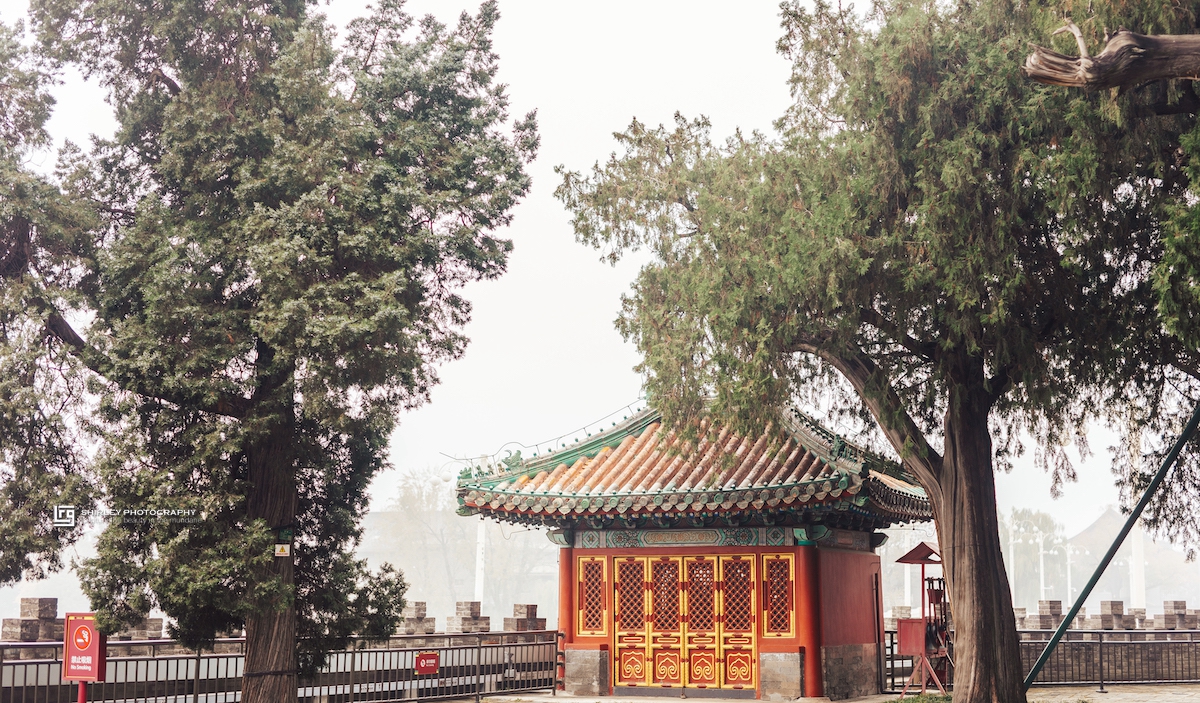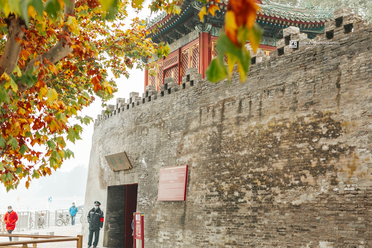 另外,团城三面环水,站在城墙边,还能遥望对岸的中海。不过因为拍摄那天实在能见度太差,倒显得中海朦朦胧胧间显得更加神秘了。
