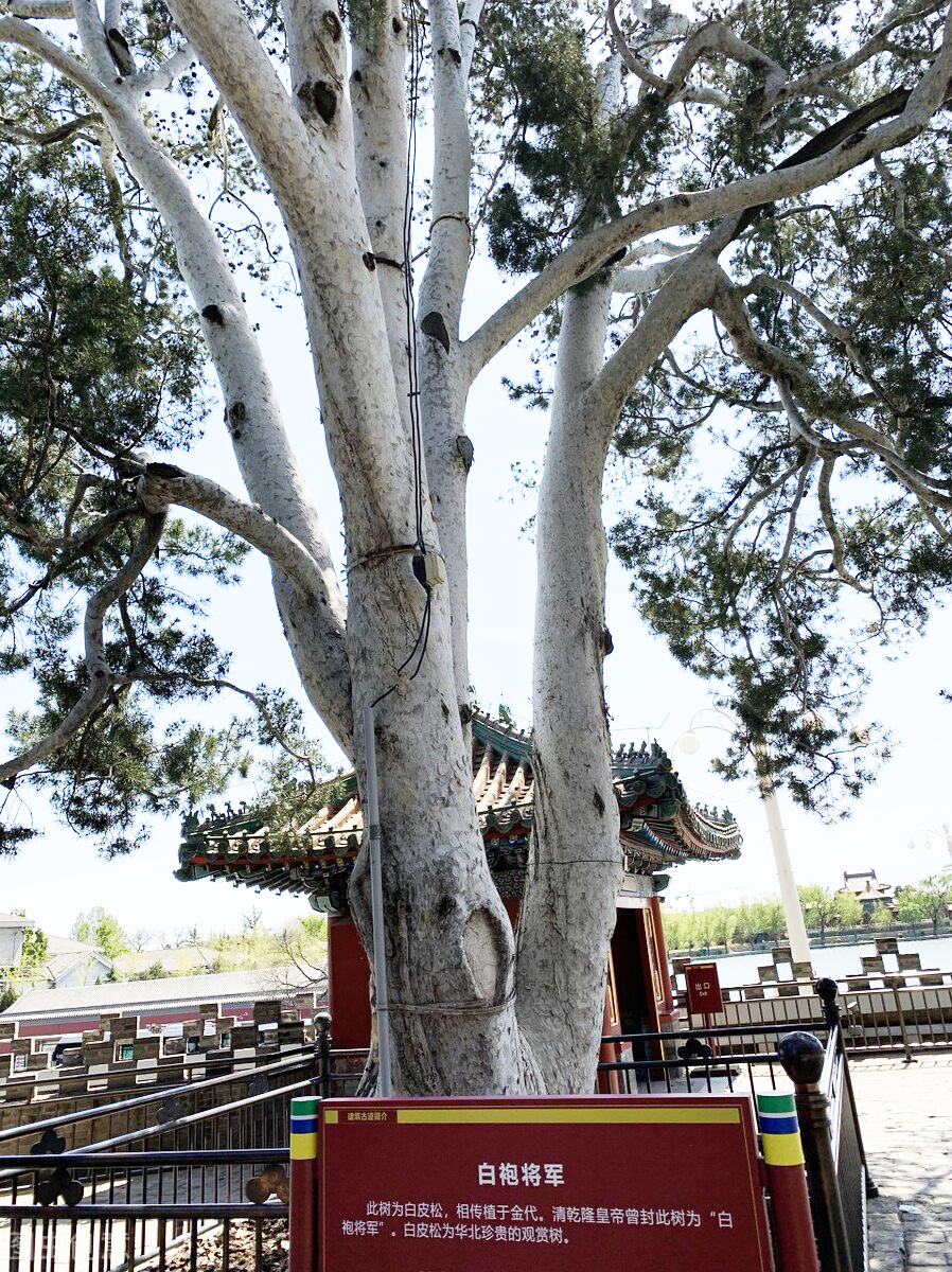 白皮松为金代遗留,依旧枝繁叶茂,是整个团城最久远的古物。据说,白皮松会像蛇一样蜕皮,而且越蜕皮越白。因深得乾隆喜爱,被封为白袍将军。在团城,这棵白皮松真的像一位将军一样,守护着前方被《国家人文历史》称为“镇国玉器之首”的渎山大玉海。