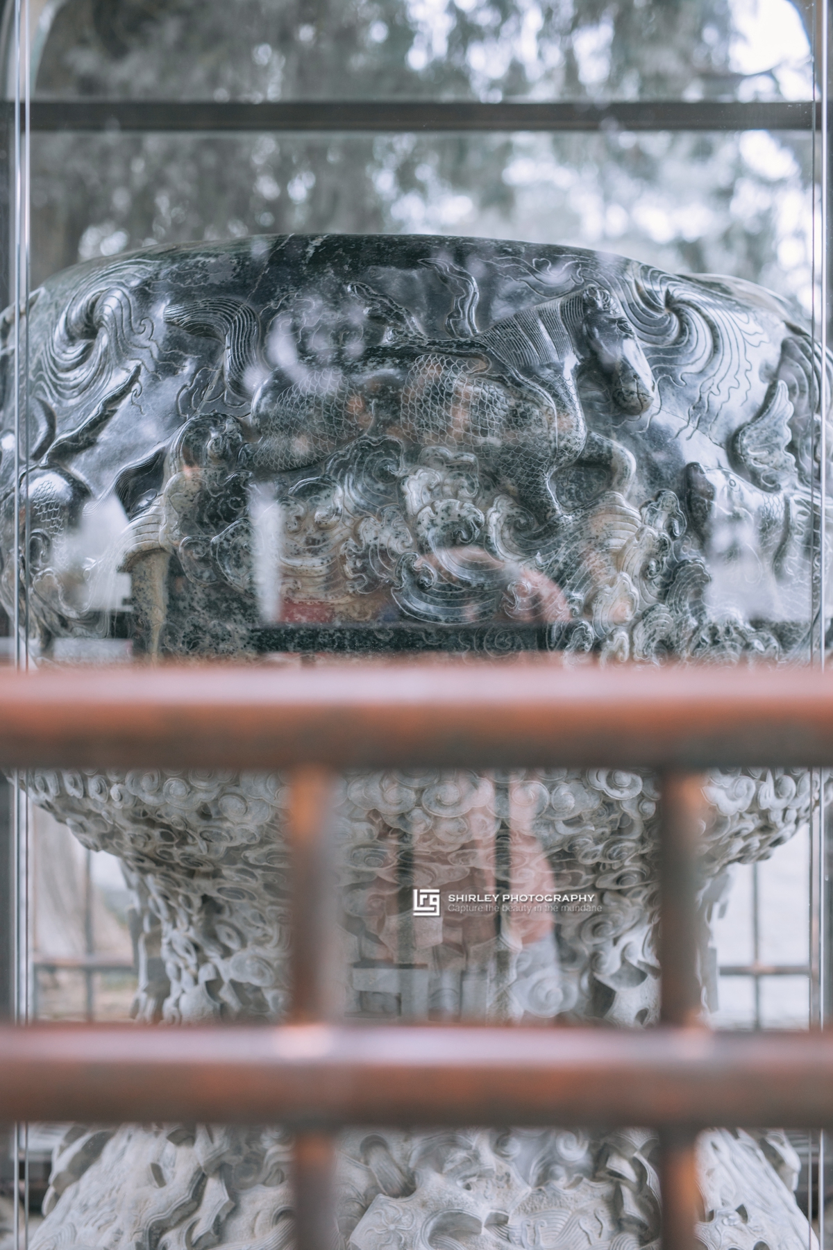 相比这两棵和乾隆扯上关系的古树,玉瓮亭里的渎山大玉海,是当之无愧的国家级珍宝。渎山大玉海"重约3500公斤,是中国现存的最早的特大型玉雕。它是元世祖忽必烈在至元二年(1265年)下令制作的,意在反映元朝国力之强盛。大玉海周身雕满了海龙,海马,海珠等,这些海兽在波涛纹中栩栩如生,也代表了元代玉作工艺的最高水平。据说在元代时,渎山大玉海曾作为盛酒容器大宴群臣。