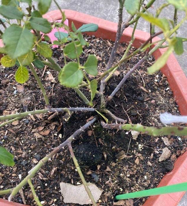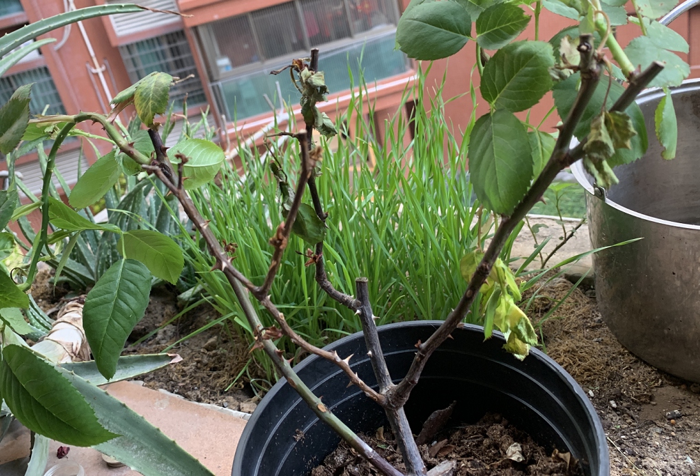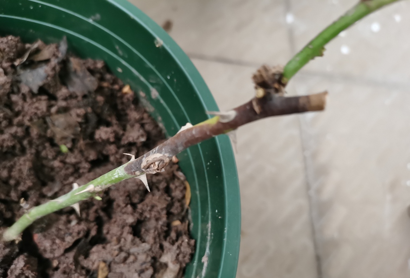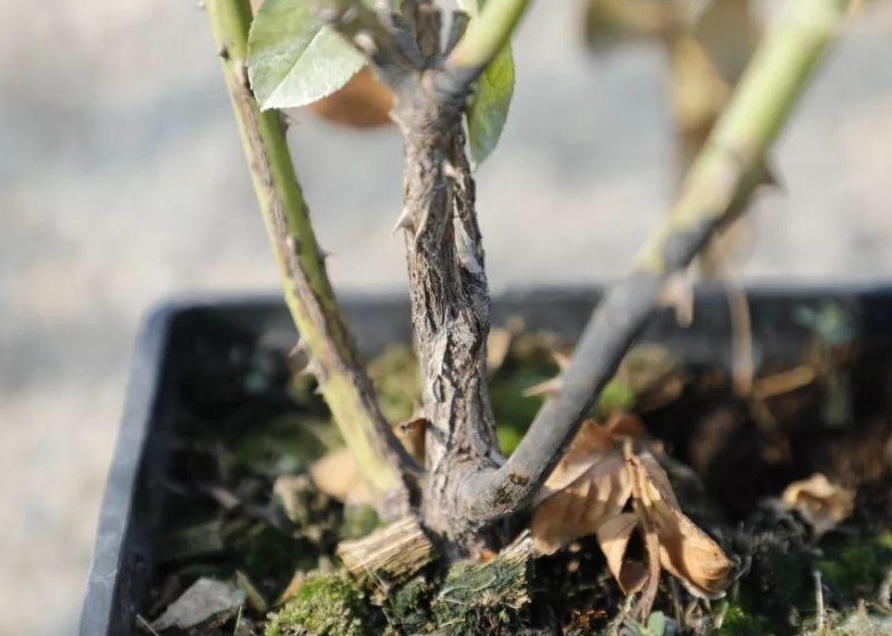 而在冬天,种植裸根苗,或者是换盆的时候,月季的根系直接接触到了底肥,也容易在春天出现黑杆。有些是从顶端开始,有时是从底部开始。
