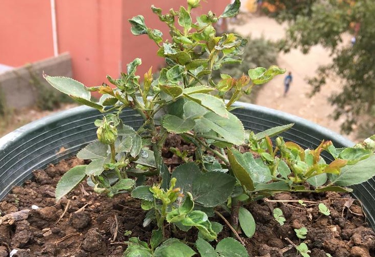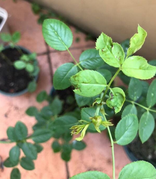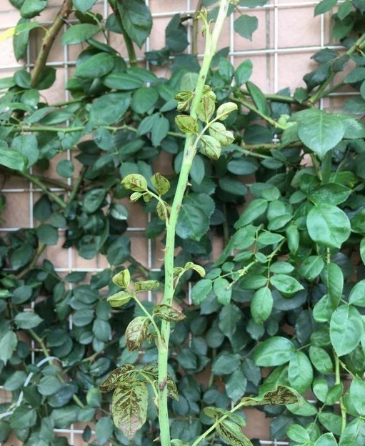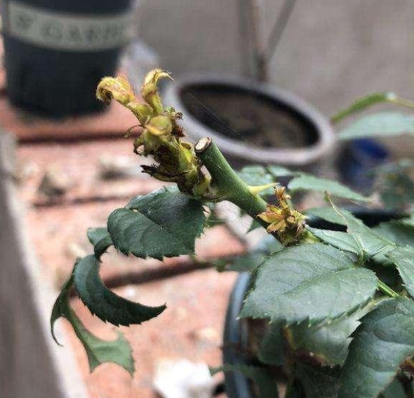 如果您的月季,从春天开始就没有做过蓟马的防治,那么现在可能已经是比较严重了,月季有可能表现为新芽发黑,无法萌发。