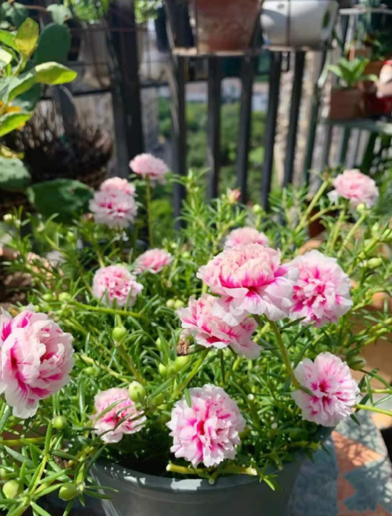 在阳台或花园里,想养一款易打理,不怕热,好养开花多的植物,该选什么呢?那自然要选太阳花了,天气越热、太阳越晒,太阳花开的越好看,而且十分好养活,就算是养花新手,也能轻松养爆盆,而且可以利用修剪下来的枝条,一盆变十盆。