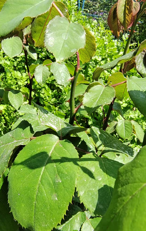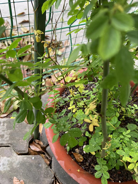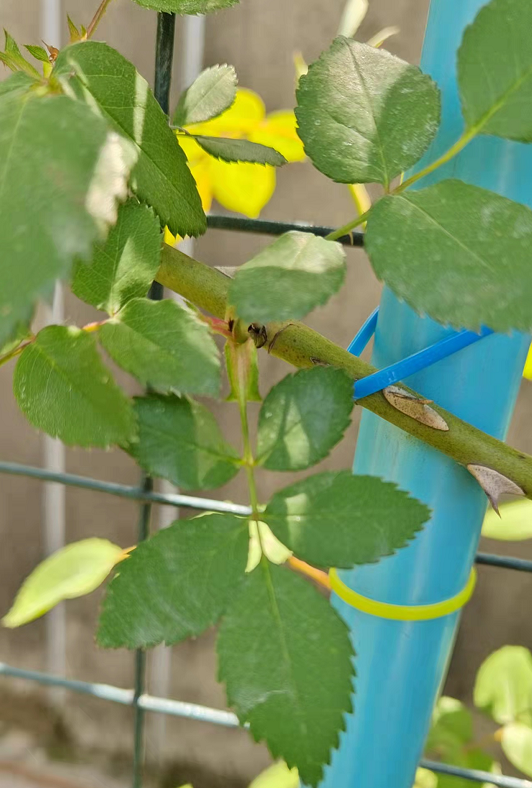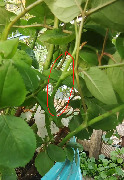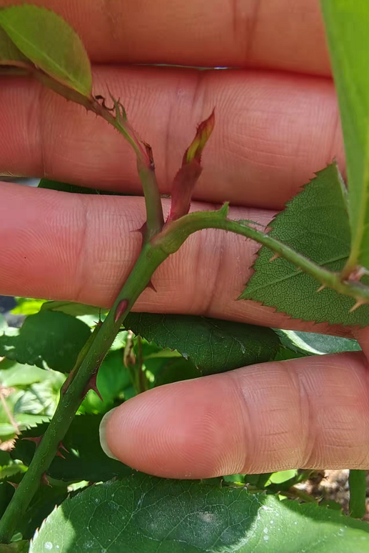 但是需要注意一点,如果我们的月季本身长的就弱,新芽发出了就是这样大量的一簇叶子的盲枝,而且是处于枝条上部,能够接受到足够的光照,这种状态,表示月季的根系不是很健康,或者非常严重的养分不足,这时是不能直接掰除盲芽的,而是该保留这些盲芽光合作用制造养分。