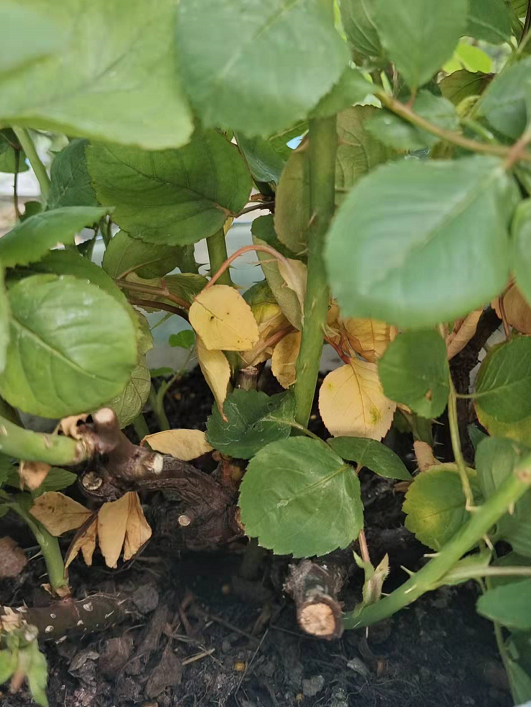 在春天,月季也会容易从靠近基部的位置萌发新芽,但是这些新芽会因为长势的区别,最终走上不同的解决。长势很旺盛的,会变成强壮的笋芽,而长势弱的,则往往在生长出一段枝条后,就逐渐生长停滞,出现黄叶,变成盲枝。