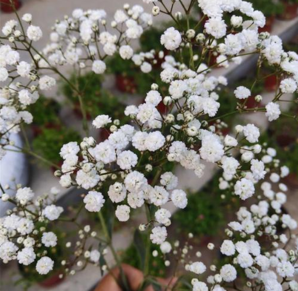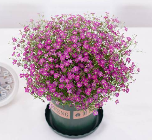 重瓣满天星在苗生长期,可以进行摘心,促进发侧枝,而在开花后,则可以将花穗剪下来做鲜切花或制作成干花。重瓣满天星开花量非常大,往往一只花穗就能做成一捧花束。