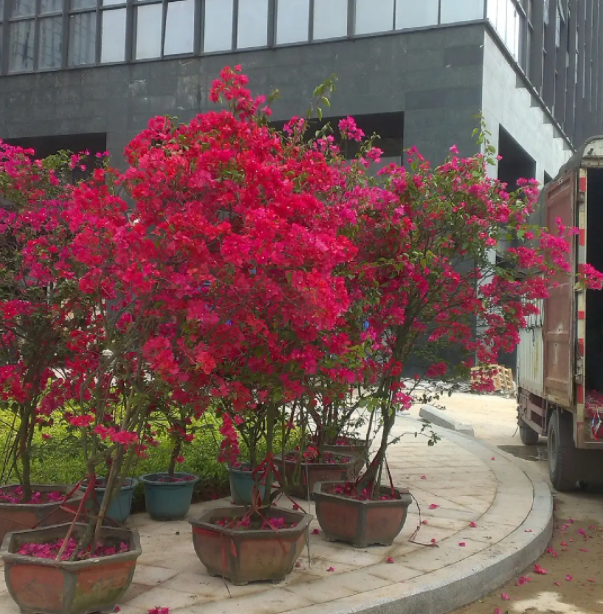 三角梅是非常适合用小盆种植的花卉品种,如果苗不大,蓝妖建议您就用1加仑大小的盆种,如果是多年的粗杆老桩,苗很大的,一般也就用口径30cm左右的花盆种,总之花盆的大小,应比咱们种植其他同等大小苗木的盆要小一些,盆小是为了方便控水。