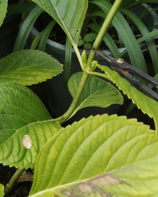 绣球花花后修剪主要分为轻剪和重剪2种,具体剪多少,还是取决于个人的想法,比如我想要绣球长出很大一颗,那么就以轻剪为主,让说空间有限,不想要绣球长的很大颗,那么就可以重剪。