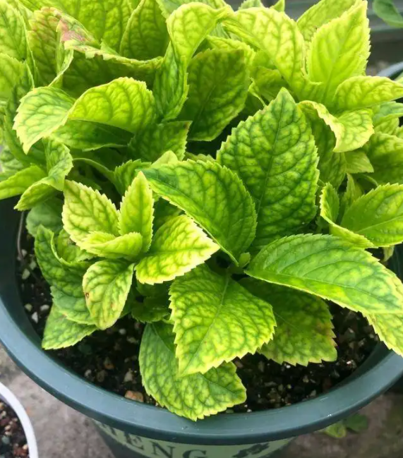 在夏季绣球很容易出现缺铁性黄叶,尤其是花后重剪过的绣球,更加容易出现缺铁性黄叶。绣球出现缺铁性黄叶,与天气炎热,根系吸收不良有很大关系,如果绣球重剪了,叶片少了,光合作用和蒸腾作用都减弱了,就会影响绣球根系吸收,因为蒸腾作用是根系吸收的动力。