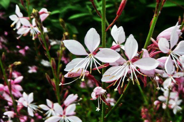 千鸟花也叫白蝶花、玉蝶花等,学名山桃草,是多年生宿根草本花卉。千鸟花是花叶分离的,花穗高耸,开花量大,随风摇曳,非常飘逸灵动,是常用的花境搭配植物,千鸟花生命力旺盛,也常用作地被植物群植或片植。今天的文章重点教你千鸟花怎么养才好看。