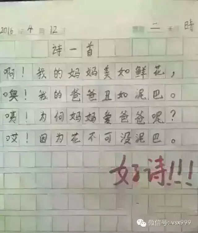 今日特别图片,这首诗反应了一个问题!孩子长的漂亮像母亲,建议赶紧DNA监测!!哈哈