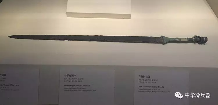 长剑一般长1米左右,双刃,有的有柄,有的无柄,多锈蚀严重,难见其原来面目。匈奴墓葬中出土的斧、矛和戈应是对中原兵器的引进和借鉴。这些匈奴短兵器在辽阔的帝国疆域内表现出较强的一致性,具有鲜明的匈奴族特点,与其他民族的兵器有较明显的区别。